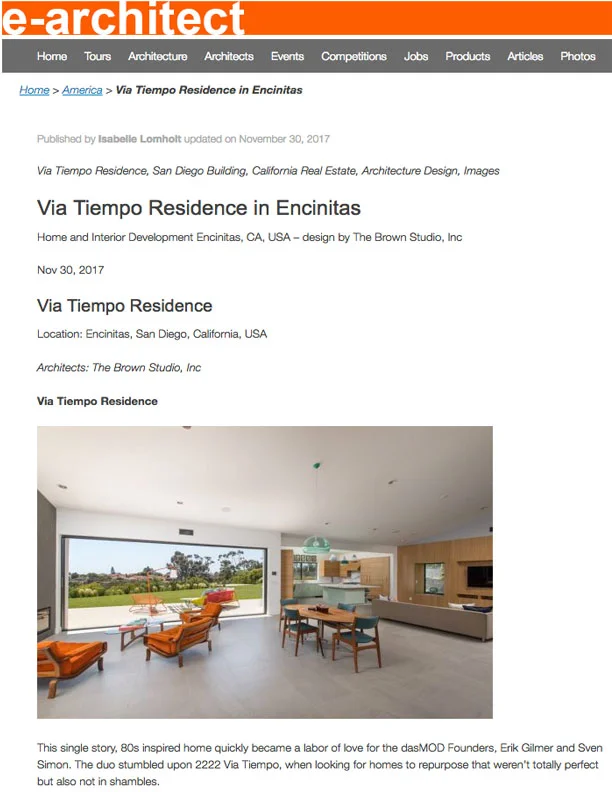 E-ARCHITECT | DECEMBER 12, 2017Via Tiempo Residence in Encinitas. Home & Interior Development.